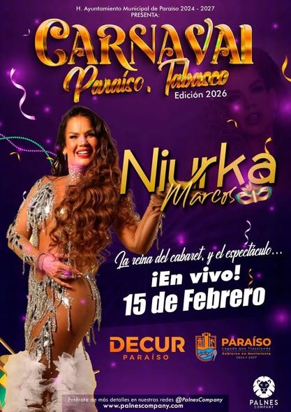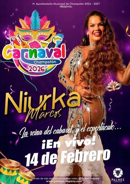Palnes Company presenta a Niurka Marcos en dos de los carnavales más importantes del sureste. 14 de febrero – Carnaval…