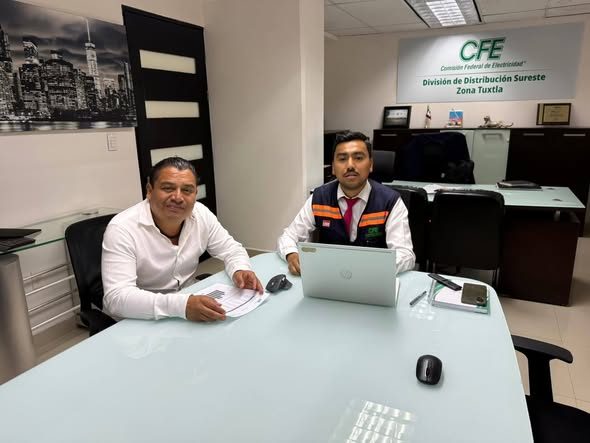 Erlen Sanchez Hernandez sostiene una reunión con el Jefe de la Oficina de Grandes Clientes y Gobierno de la División de Distribución Sureste de la zona Tuxtla Gutiérrez