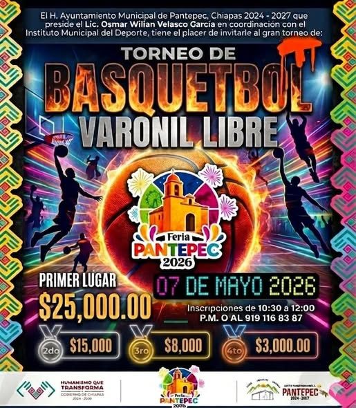 TORNEOS DE BASQUETBOL FERIA PANTEPEC 2026 Buscando fomentar la sana convivencia y el espíritu deportivo en nuestro municipio, se invita…