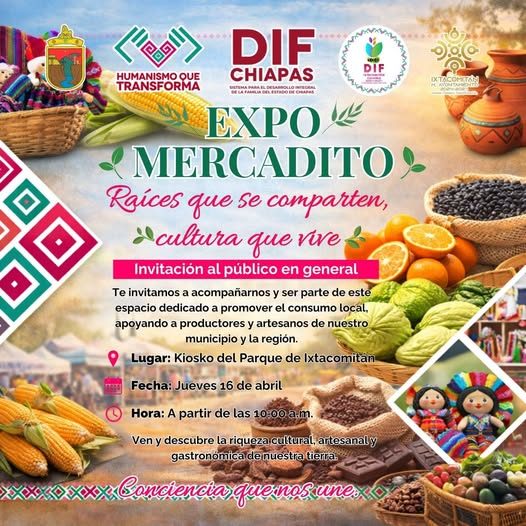El Sistema DIF Municipal de Ixtacomitán, hace una extensa invitación al Expo Mercadito