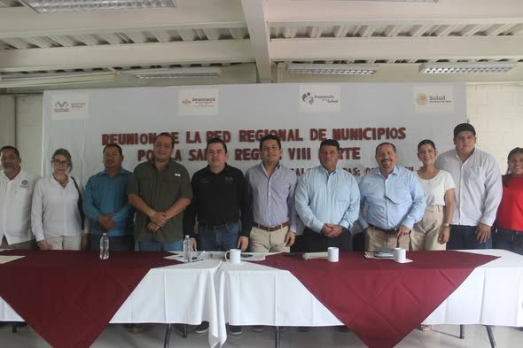 Con el objetivo de fortalecer la coordinación intermunicipal y establecer estrategias conjuntas que permitan mejorar la atención médica y los programas de prevención en materia de salud pública, el presidente municipal Oscar Serra Cantoral, en compañía de Enia Danae Hernández Hernández, directora de Salud Municipal, asistieron a la Primera Reunión de Trabajo de la Red Regional VIII Norte de Municipios por la Salud.