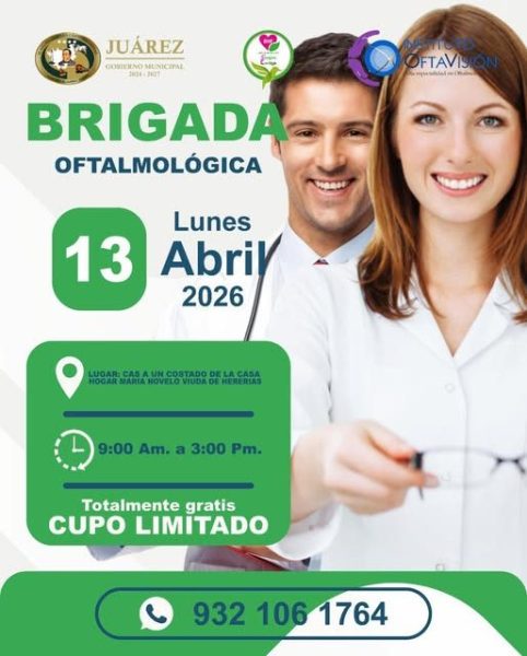 El Sistema DIF Municipal de Juárez, Chiapas, que preside la C.P. Sonia Calcáneo Sonia Calcaneo Montellano invita a la ciudadanía a participar en la Brigada Oftalmológica, con el firme compromiso de cuidar la salud visual de nuestras familias.