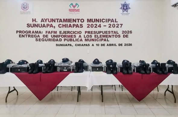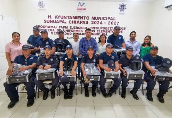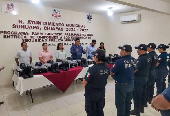 El Ayuntamiento de Sunuapa que encabeza el alcalde Fredi Ramírez Díaz llevó a cabo la entrega de uniformes a elementos de la Policía Municipal, en compañía del cabildo, la secretaria ejecutiva de Seguridad Pública Municipal C.P. Olga Pérez González y el secretario municipal C. Óscar Garduza Hernández.
