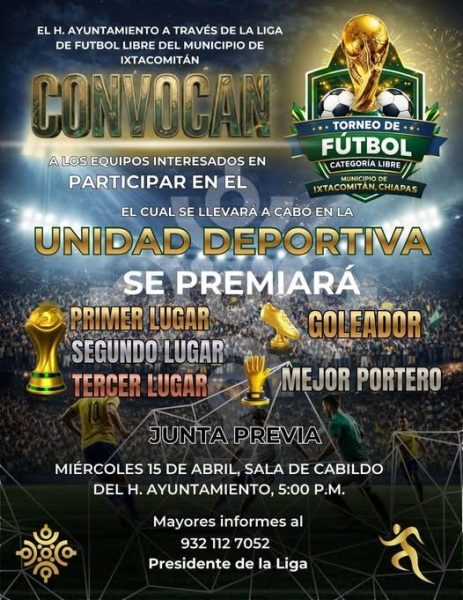 Al torneo de fútbol varonil en su categoría libre, organizado por el ayuntamiento que preside Miguel Angel Moreno Palacios y el comité de la liga municipal.