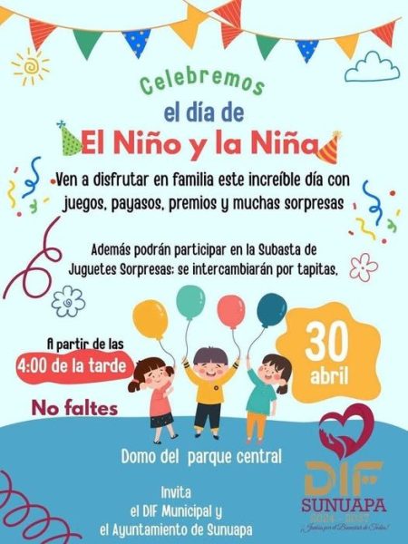 El DIF Municipal de Sunuapa en coordinación con el Ayuntamiento te invita a disfrutar de una tarde llena de alegría, juegos, payasos, premios y muchas sorpresas para toda la familia. ![]()