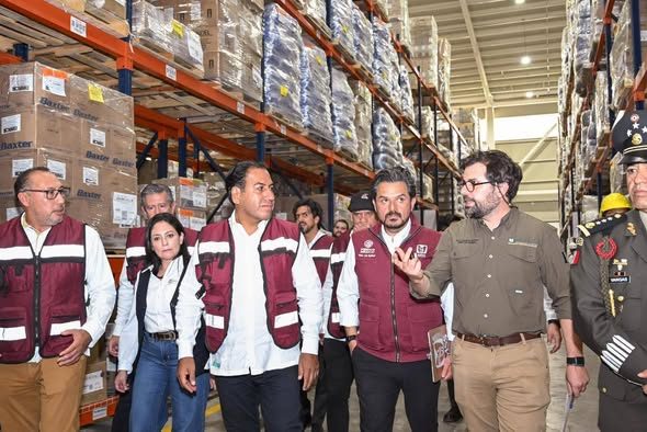 El gobernador Eduardo Ramírez Aguilar, junto al director general del IMSS Bienestar, Alejandro Svarch Pérez, encabezó la reunión de evaluación sobre los avances en la consolidación del Servicio Universal de Salud en Chiapas y realizó un recorrido por las instalaciones del Centro de Distribución Logística de Medicamentos del IMSS Bienestar, espacio que fortalecerá la red de abasto en la entidad, permitiendo que las y los chiapanecos reciban atención de calidad y que puedan tener sus tratamientos completos.