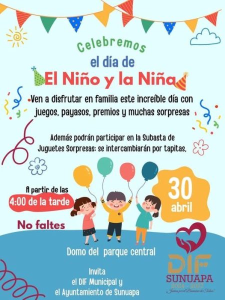El DIF Municipal de Sunuapa en coordinación con el Ayuntamiento te invita a disfrutar de una tarde llena de alegría, juegos, payasos, premios y muchas sorpresas para toda la familia. ![]()