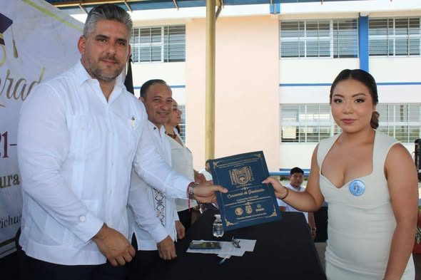 En representación del presidente municipal de Pichucalco, Mtro. Andrés Carballo Córdova, asistió el Lic. Efraín Hernández Cruz, quien transmitió un mensaje de felicitación y reconocimiento a los egresados por este importante logro académico.