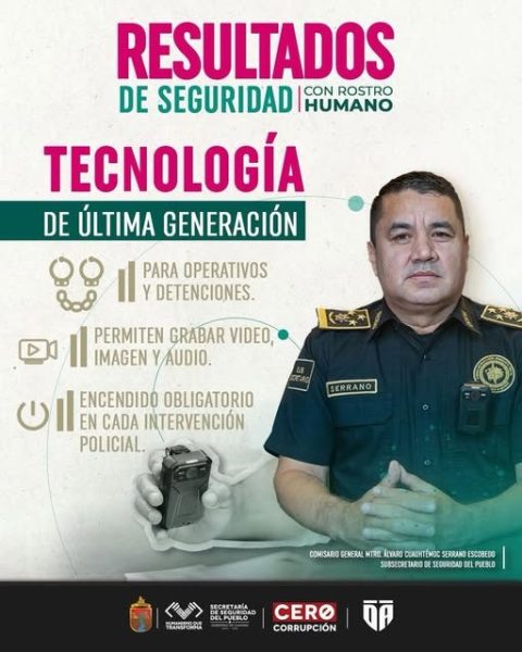 En la Nueva ERA, la Secretarรญa de Seguridad del Pueblo fortalece su labor operativa con cรกmaras de solapa que brindan mayor transparencia, respaldo en cada intervenciรณn y herramientas eficaces para operativos y detenciones.