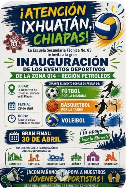 Asiste y apoya a los jóvenes deportistas de los municipios de Pantepec, Juárez, Tapilula, Reforma, Ostuacán, Solosuchiapa y el anfitrión Ixhuatán!!!!!!