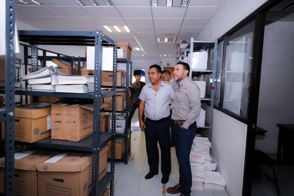 En dicho recorrido, dio puntual seguimiento a los trabajos realizados para la conservación y concentración documental de la entidad en materia archivística, nuestro titular agradeció el compromiso con el orden y la eficacia en los archivos de la Institución.