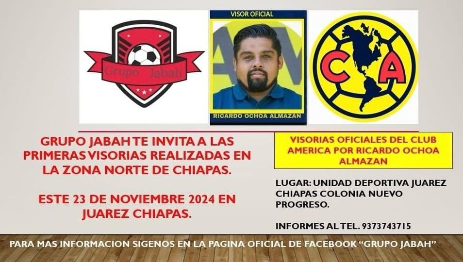 ESTE 23 DE NOVIEMBRE, SE LLEVARÁ ACABO LAS PRIMERAS VISORIAS OFICIALES DEL CLUB AMÉRICA EN JUÁREZ, POR PARTE DEL PROFESOR RICARDO OCHOA.