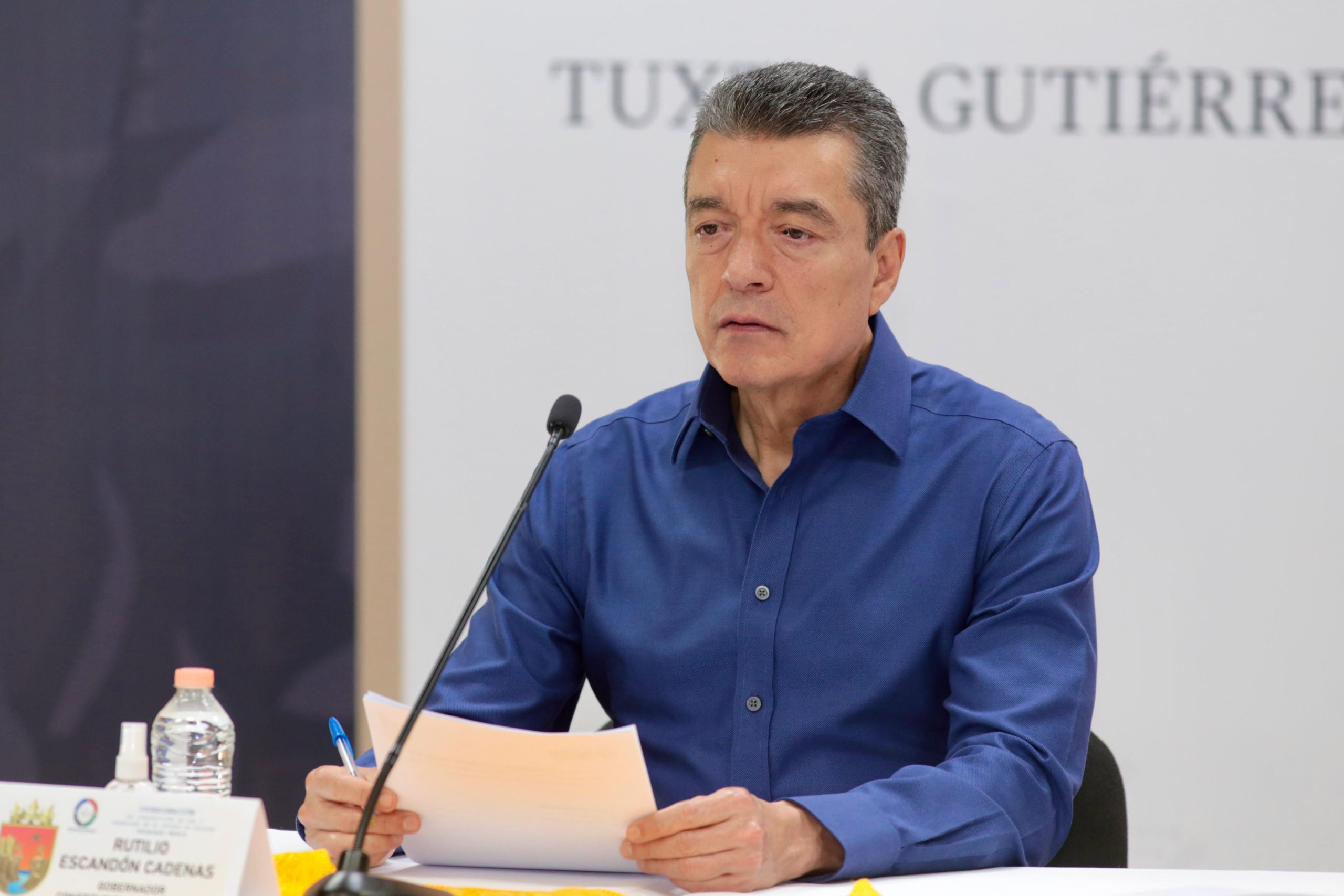 En la Mesa de Coordinación Estatal para la Construcción de la Paz y la Seguridad, el gobernador Rutilio Escandón Cadenas informó que las autoridades federales, estatales y municipales se encuentran hasta en los lugares más alejados de la entidad para realizar acciones de auxilio y entrega de apoyo humanitario a las personas que sufrieron afectaciones por las lluvias.