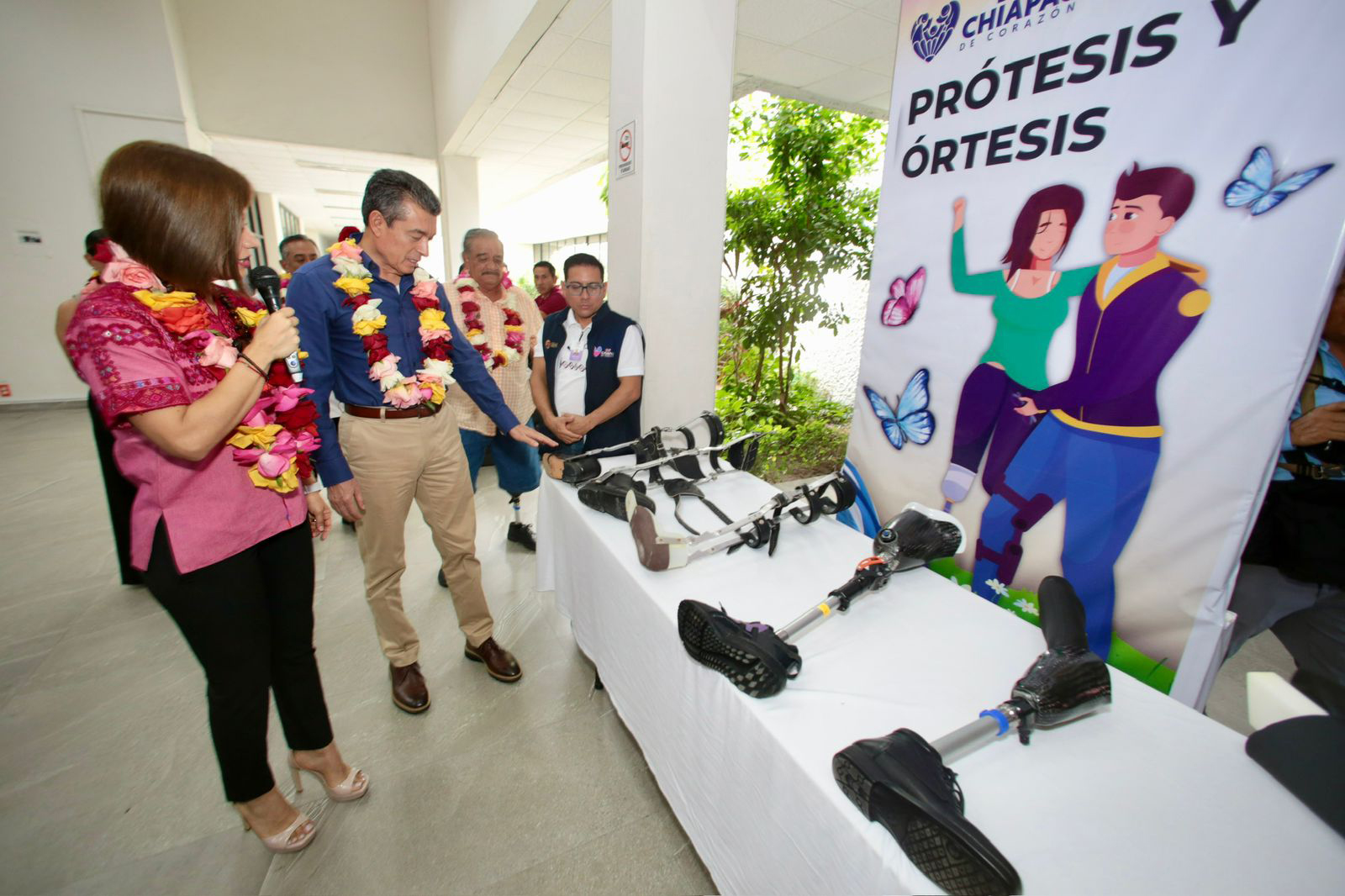 La directora del Sistema DIF Chiapas, Karina Martínez López, informó que, en esta ocasión, se entregarán 127 apoyos consistentes en 44 prótesis transtibiales, 16 prótesis terminadas, 24 aparatos largos y 43 férulas, con una inversión superior a los cuatro millones 700 mil pesos. Agregó que también se dispersarán más de 15 mil lentes de vista cansada, en beneficio de los 124 municipios de la entidad.