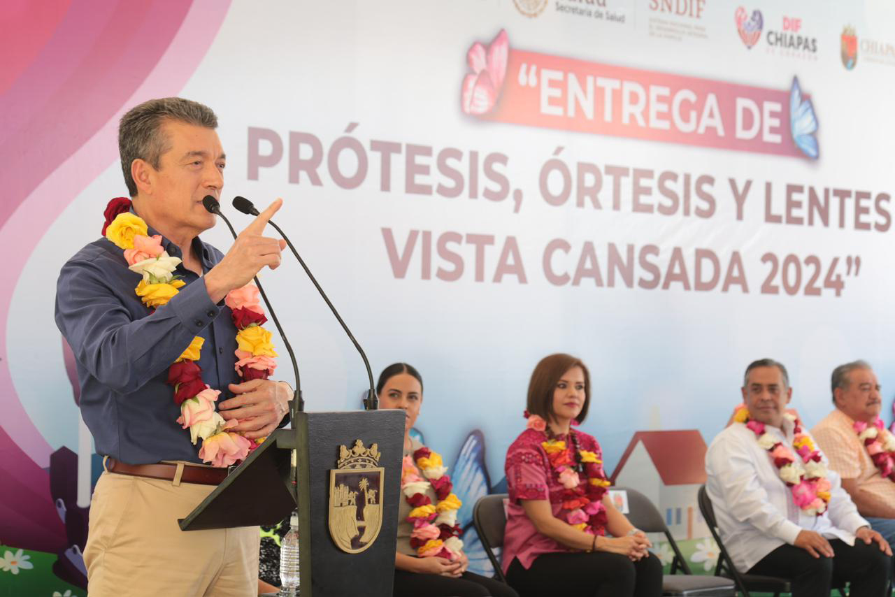 Al encabezar la entrega de prótesis, órtesis y lentes de vista cansada 2024, el gobernador Rutilio Escandón Cadenas destacó que, en esta administración, el Sistema DIF Chiapas se recuperó para cumplir con su objetivo primordial, que es brindar atención a quienes más lo necesitan, como son las personas con discapacidad que hoy reciben apoyos que les permitirán una mayor inclusión social.