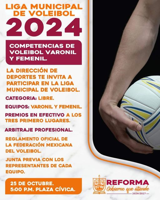 Participa en las ligas municipal del voleibol varonil y femenil, junta previa el viernes 25 de octubre en la plaza cívica.