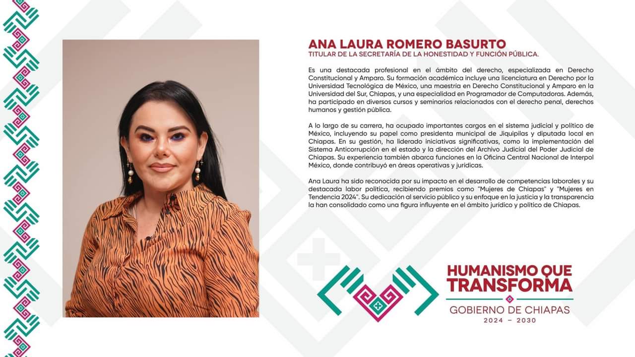 • Ana Laura Romero Basurto, titular de la Secretaría de la Honestidad y Función Pública.