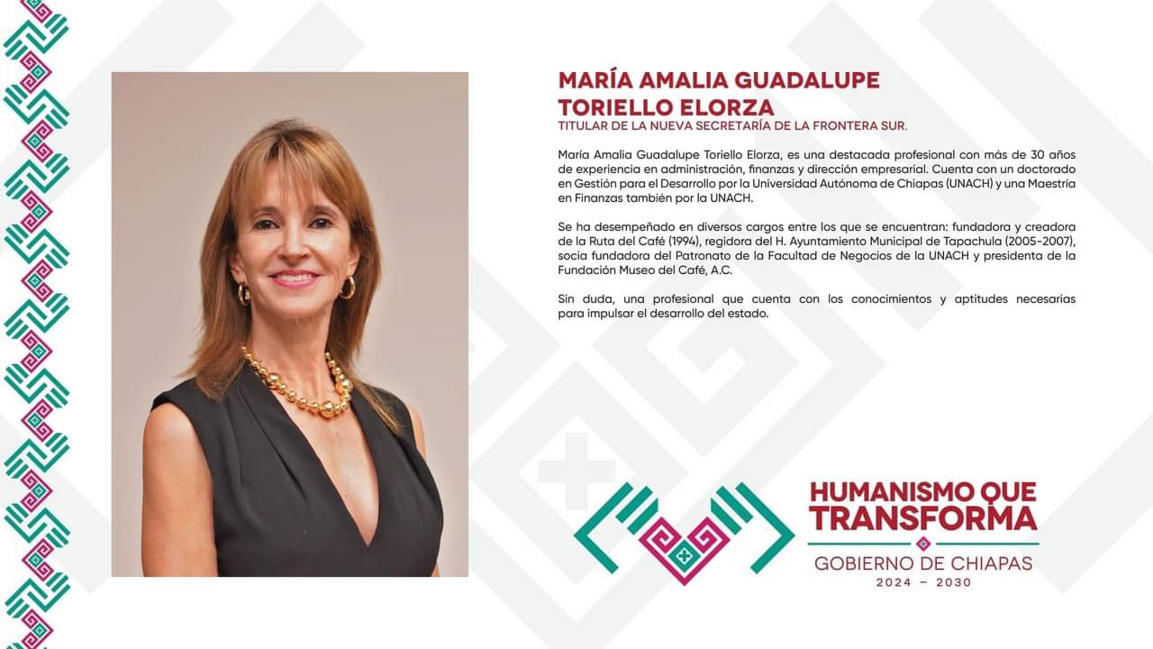 • María Amalia Guadalupe Toriello Elorza, titular de la nueva Secretaría de la Frontera Sur.