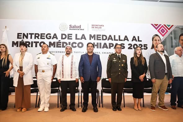 El gobernador Eduardo Ramírez Aguilar encabezó la entrega de la Medalla al Mérito Médico Chiapas 2025 al doctor Salvador Pacheco Segura, a quien describió como un hombre íntegro y patriota que, mediante su labor, llevó esperanza y mejor calidad de vida a la población más necesitada en distintas regiones del estado.