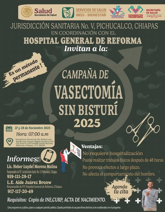 Te invitan a participar en la Campaña de Vasectomía sin Bisturí 2025, un método permanente, seguro y gratuito. ![]()