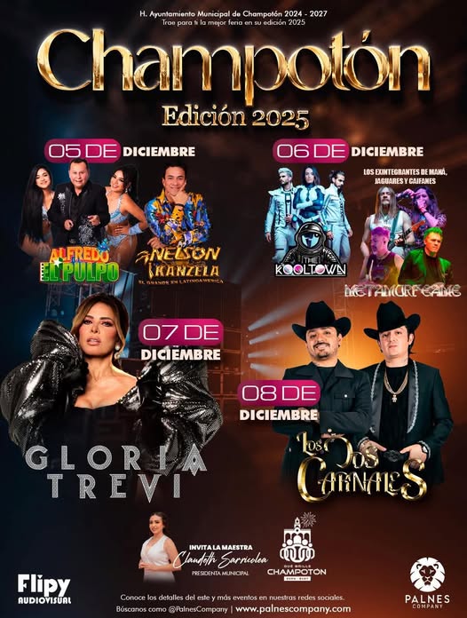 Del 5 al 8 de diciembre, disfruta de un cartel engalanado por artistas de talla internacional espectáculos inolvidables, diversión para toda la familia y ese ambiente festivo que solo Champotón sabe ofrecer